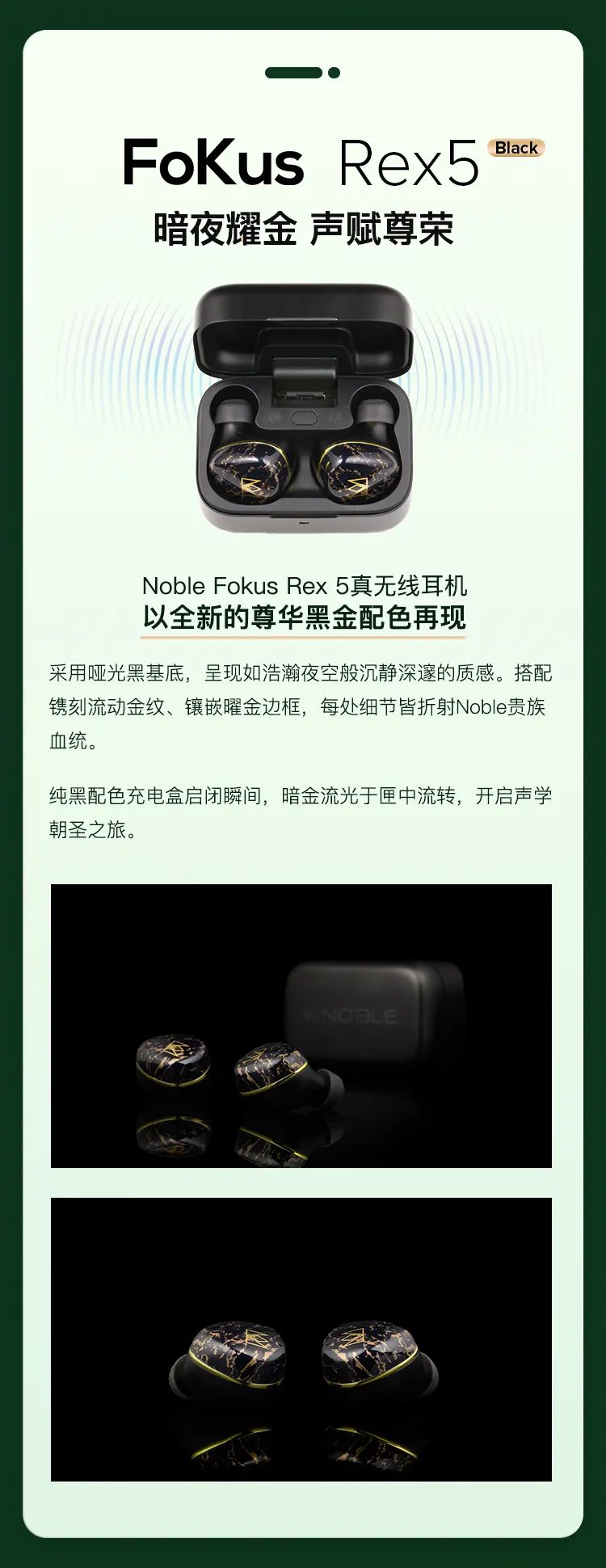Noble 自推出以來便備受贊譽的真無線耳機 Fokus Rex5 ,如今以全新黑金配色耀目再臨!