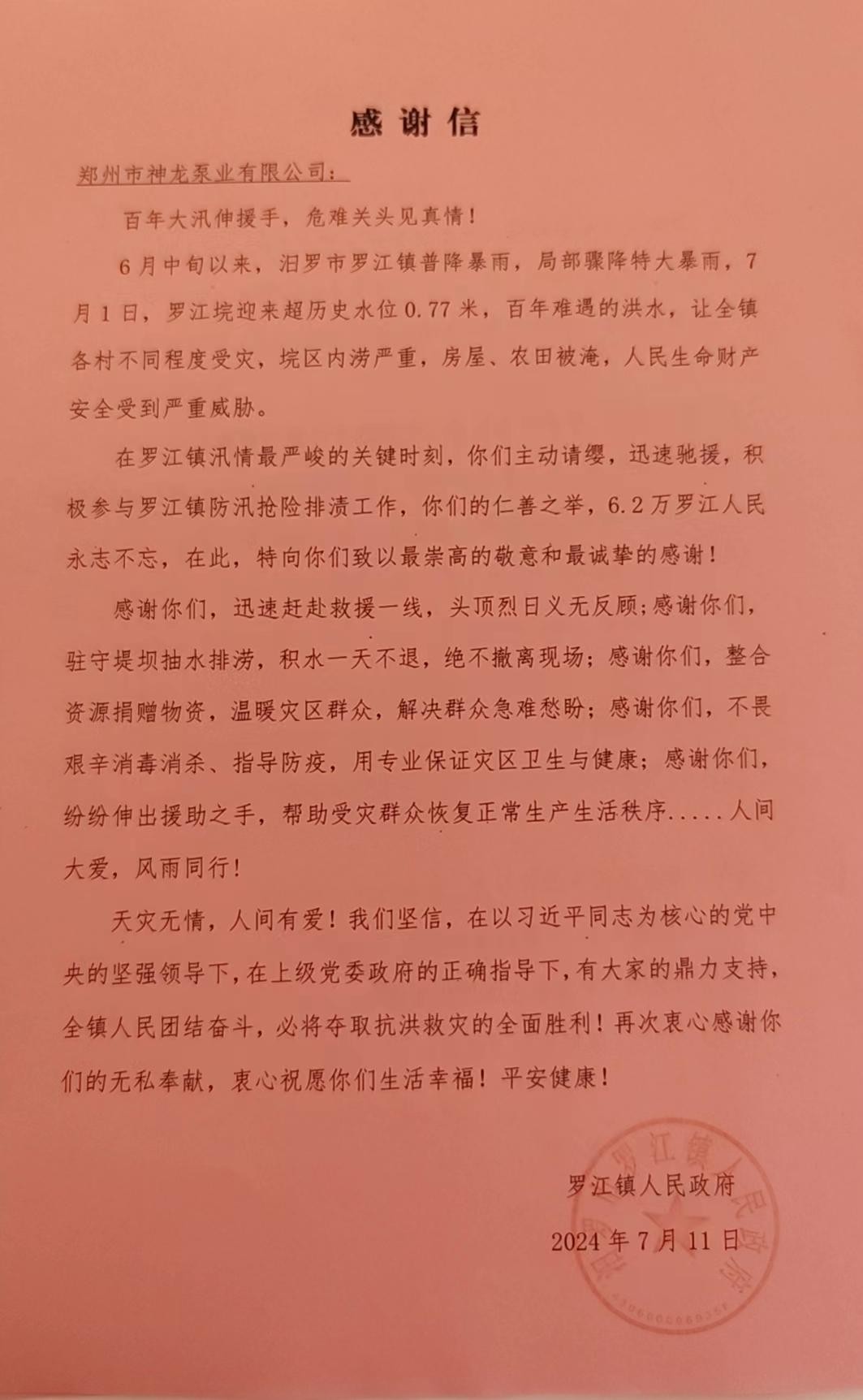 羅江鎮(zhèn)人民政府發(fā)來感謝信